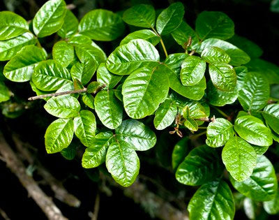 the allergen urushiol. The chemical is released when plant tissue is damaged. Humans are